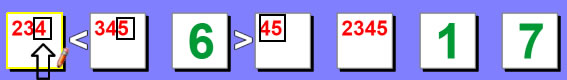 | This is a tricky example in which we will test the 5 in the 3rd box. If we set the 3rd box to 5, then that would force the 4th box to a 4. Then the 2nd box would have no choice but to be a 2 because 4 is used and 5, and 6 would violate the "less than" symbol. Having a 2, 5 and 4 on the board would now force the 1st box to a 3. So the numbers in order starting from box #1 would be 3, 2, 5, 4. Well now if you look at the possibilities in box #7, it is already a 2, 3, 4, 5 so no matter which one you choose, it would create a duplicate value for the entire row. So therefore, we can eliminate 5 as a possibility from box #3. Sometime you have to dig a little bit to reach this conclusion which can make it more tricky.
